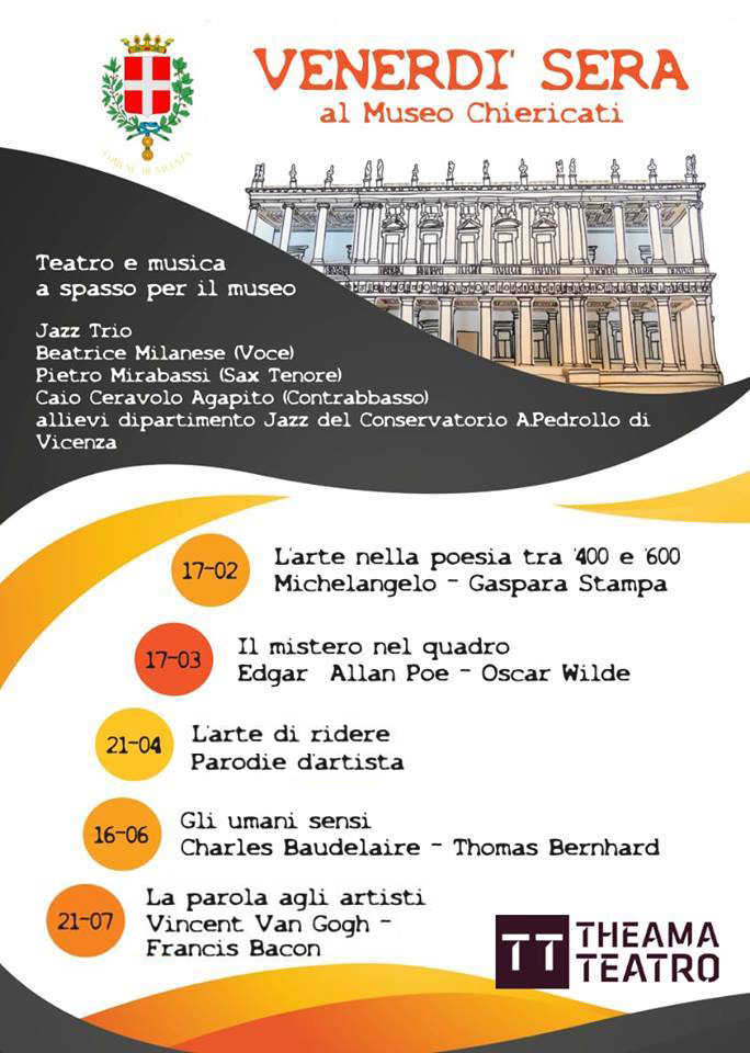 Ogni terzo venerdì del mese (a partire dal 17 febbraio 2017) è possibile l’accesso serale alla Pinacoteca cittadina. Lungo il percorso i visitatori saranno accolti da alcune sorprese: momenti di animazione teatrale e musicale ispirati alle collezioni e alle opere esposte allieteranno infatti l’insolita serata al museo.