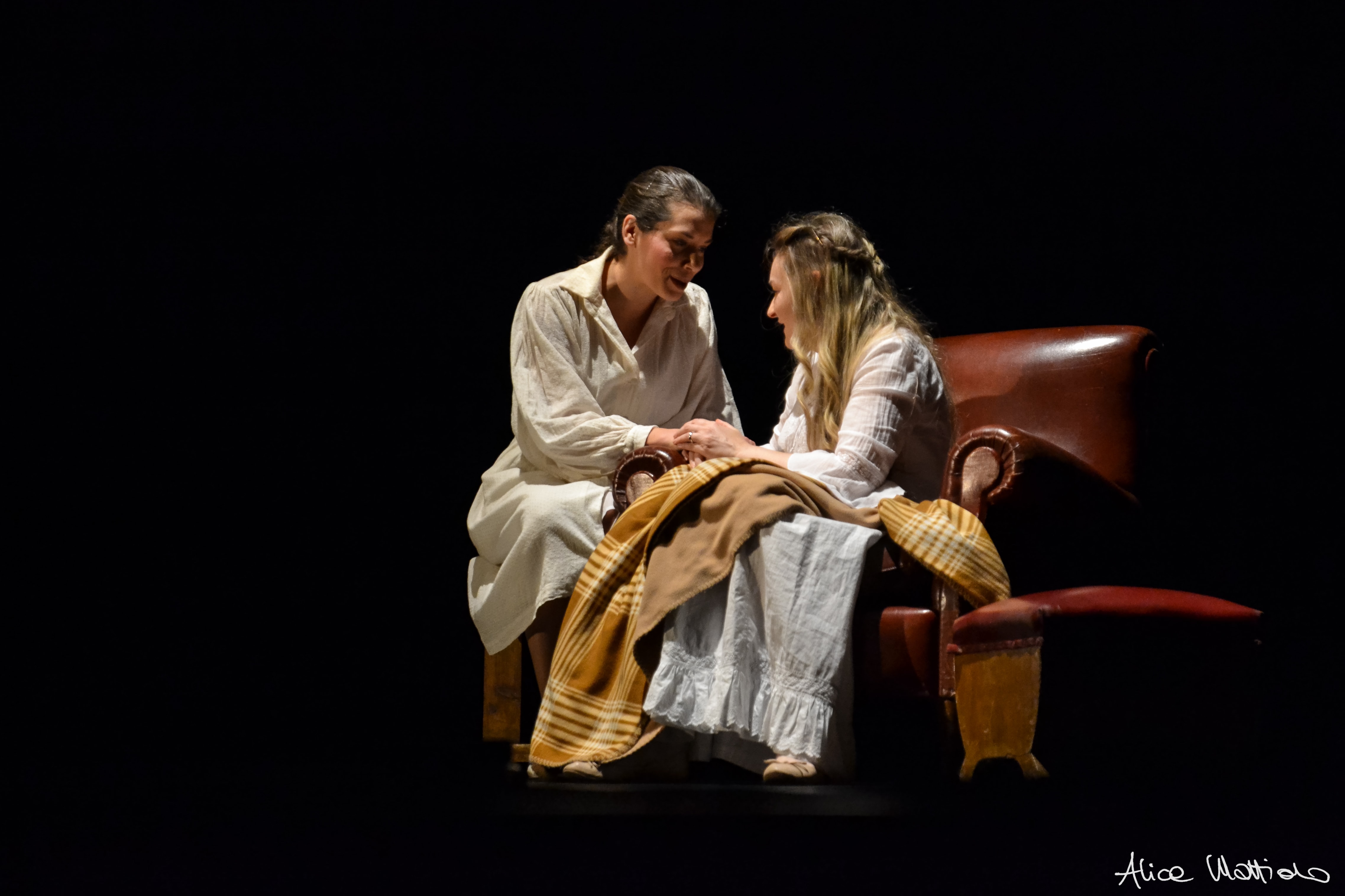 1916. Due donne, Vittoria e Maria, si ritrovano in una stanza dell’ospedale psichiatrico di Brusegana (PD): la prima è ricoverata per via di una nefrite molto grave, la seconda è la sua infermiera. Entrambe hanno vissuti simili, entrambe hanno l’esistenza sconvolta da un conflitto senza precedenti. In questa piccola stanza d’ospedale, in un gioco di ruolo a metà fra la finzione scenica e il delirio indotto dalla malattia, le due donne mettono in scena un passato fortemente segnato dalla guerra. Entrambe recano in sé traccia dell’altra, trasformandosi ora in madre, ora in figlia o cugina, confrontandosi o scontrandosi con tutte queste figure evocate e l’ambiente che le circonda. È così che la scena, sulla quale si rappresenta la realtà, subisce continue trasfigurazioni temporali, richiamando episodi vissuti, trasferendoli nel presente. In questo presente, nel quale entrambe vivono il forte disagio di essere donne di pace in tempo di guerra, la loro fragilità e le loro debolezze vengono violentemente scosse dalla forza esercitata dal conflitto.